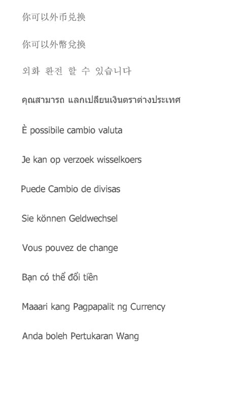 SGD(SG$),IDR,MYR,PHP,VND and so on.